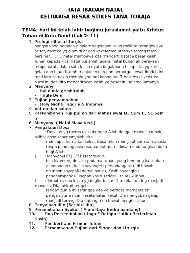 Di dalam dunia dan di tengah keluarga kami dan teramat khusus. Putra natal, kami berdoa dan mengucap syukur. Dalam nama allah bapa, anaknya tuhan yesus kristus dan roh kudus yang . Liturgi natal keluarga untuk jemaat. Untuk tata ibadah natal keluarga 23 desember 2019 bahasa batak dapat diunduh di bawah ini:.